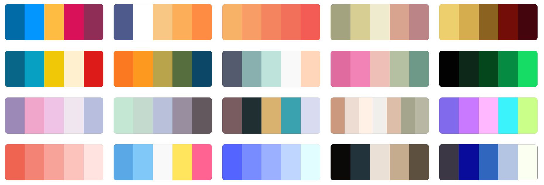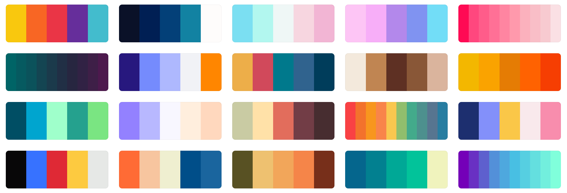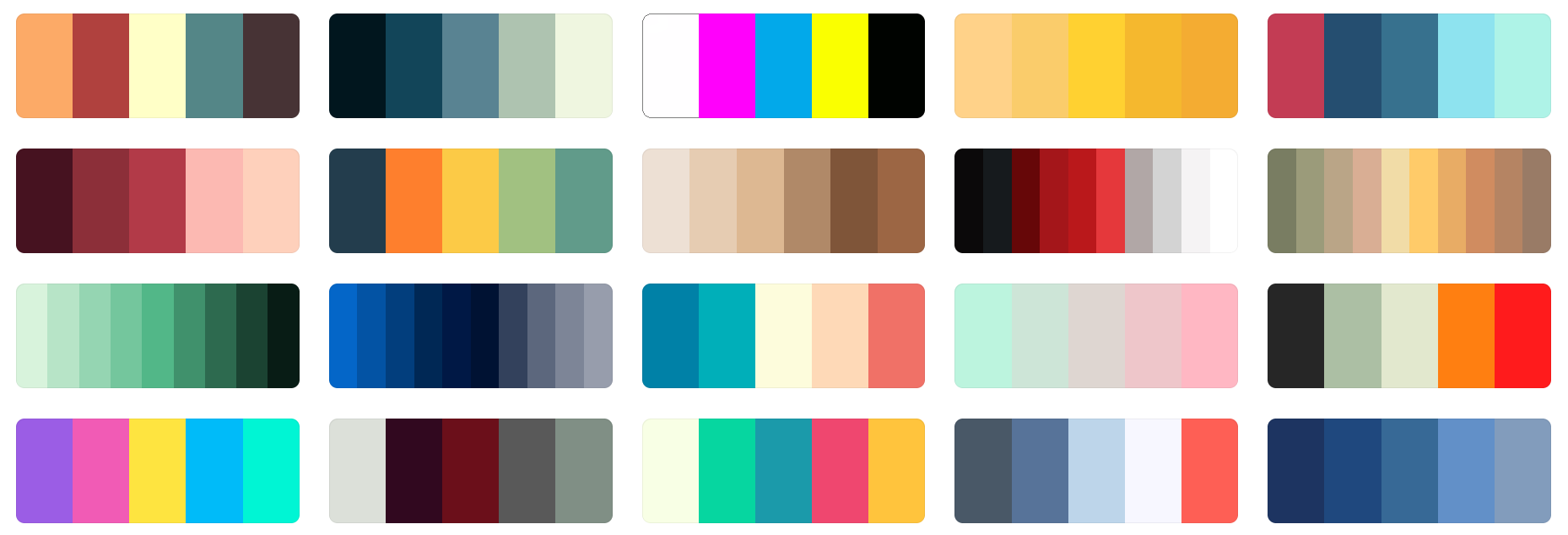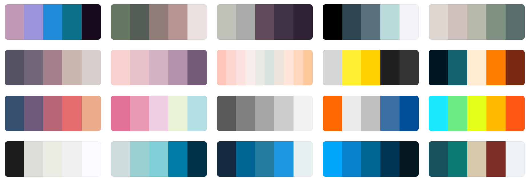 192 Color Palette SchemesGet inspired by these amazing color schemes and make something georgeous and wonderful!This page is a condensed format from: https://coolors.co/palettes/trending In order to discover the hex code of each color, you may visit the parent page and by hovering over the color on their page, you will see the HEX code.( Mermy prefers the 'JCpicker' program! ) |