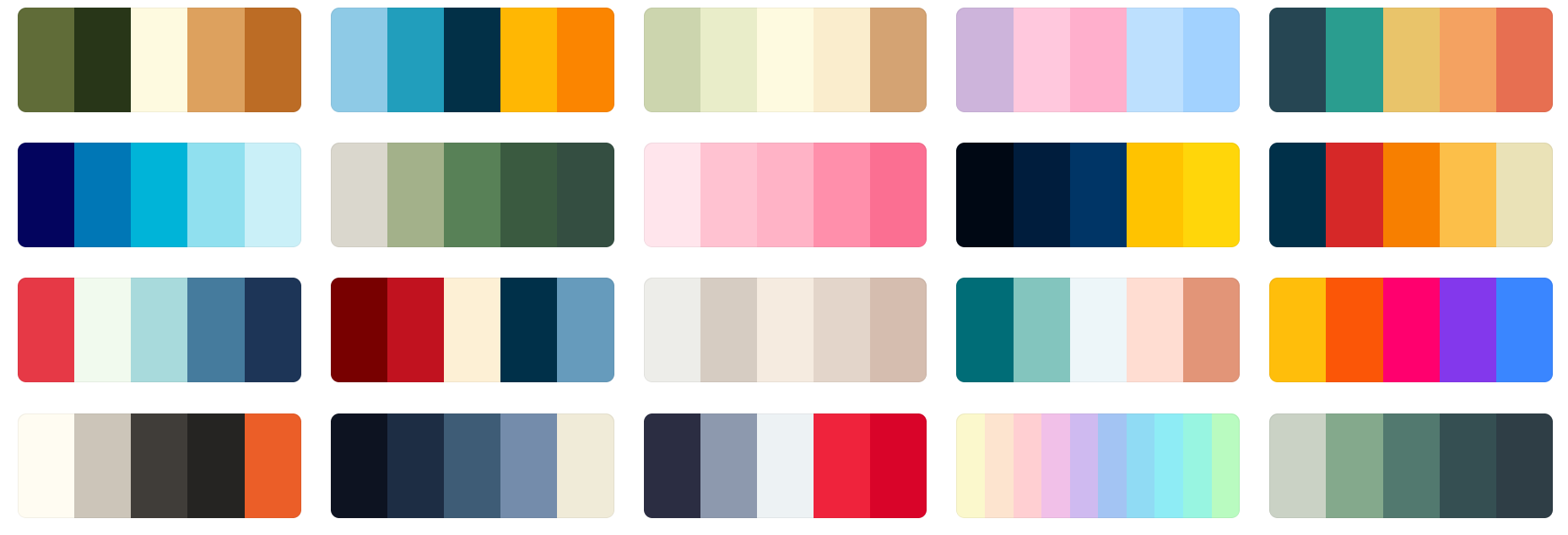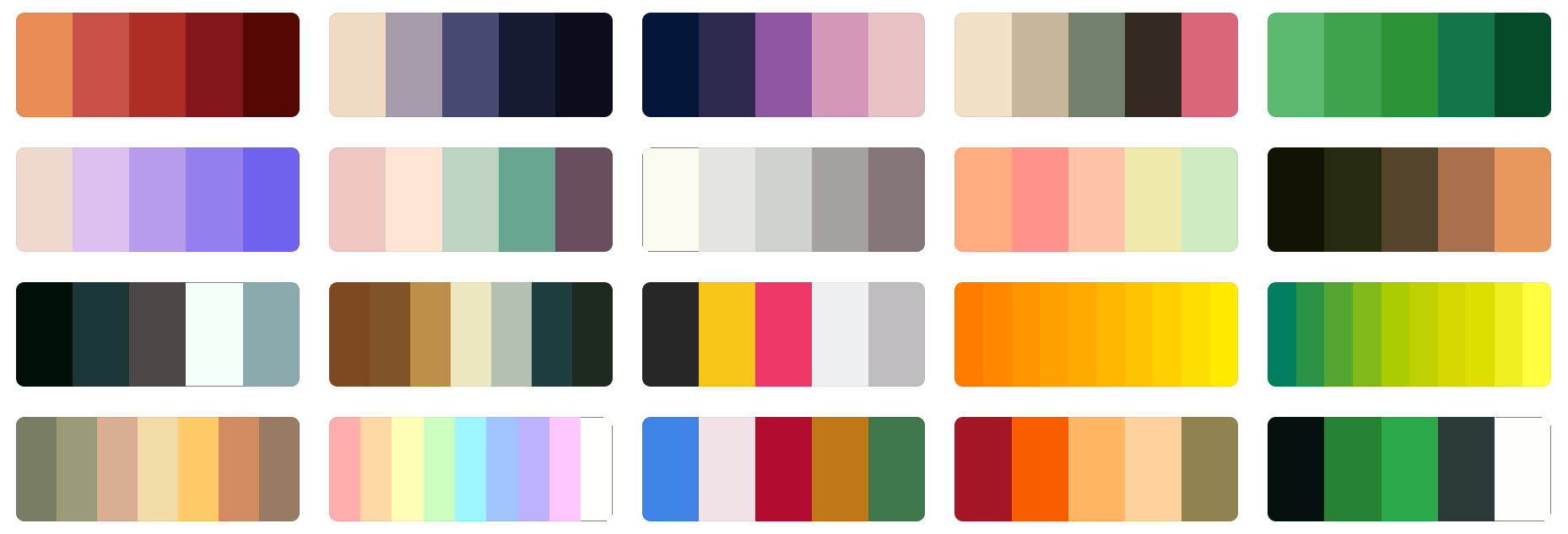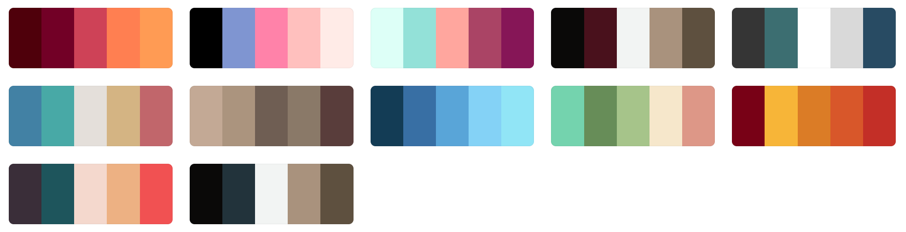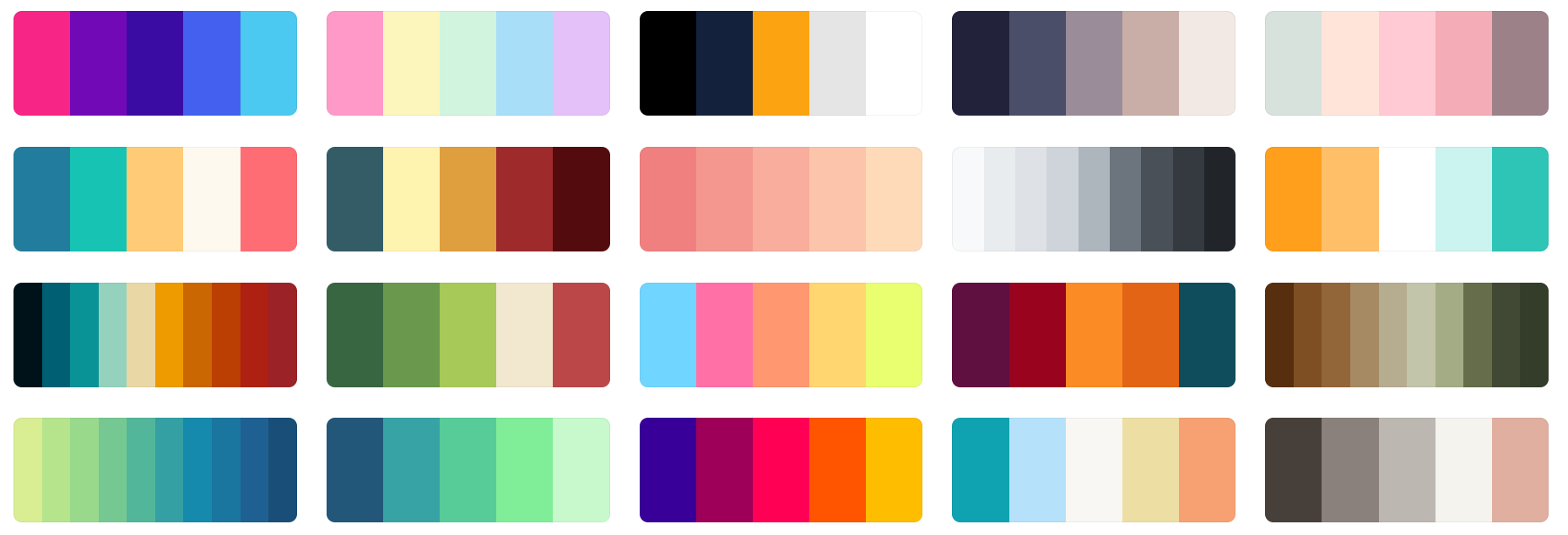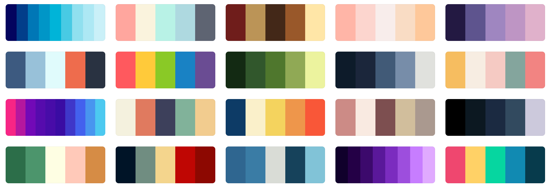 192 Color Palette SchemesGet inspired by these amazing color schemes and make something georgeous and wonderful!This page is a condensed format from: https://coolors.co/palettes/trending In order to discover the hex code of each color, you may visit the parent page and by hovering over the color on their page, you will see the HEX code.( Mermy prefers the 'JCpicker' program! ) |